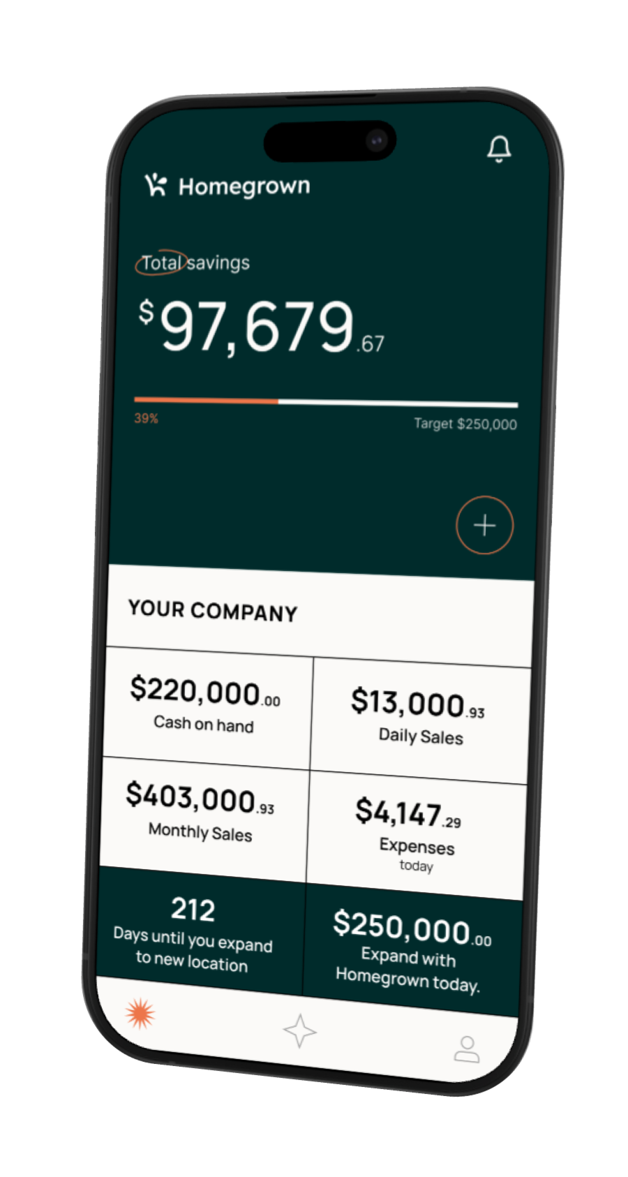 Automatically save a percentage of your daily sales and unlock expansion capital without selling your equity. You control your savings rate. No strings attached.