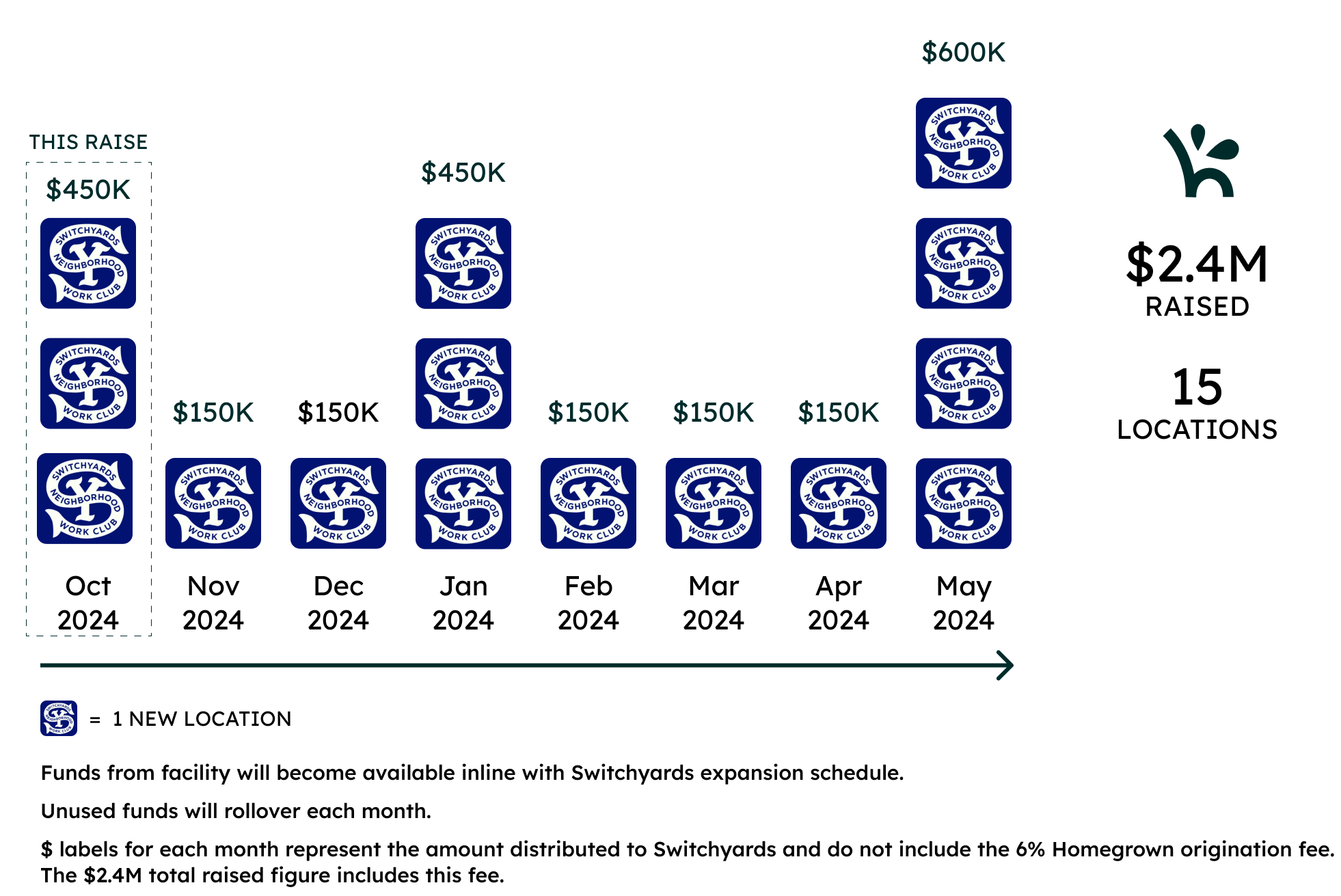 - with this raise, Homegrown will HELP SWITCHYARDS OPEN 3 NEW LOCATIONS
